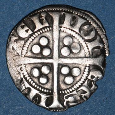Entre deux grénetis, croix pattée des esterlins cantonnée de quatre groupes de trois globules.