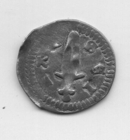 A/ à l'intérieur d'un grènetis, cavalier levant son épée et galopant vers la droite. sous le cheval, un croissant de lune.